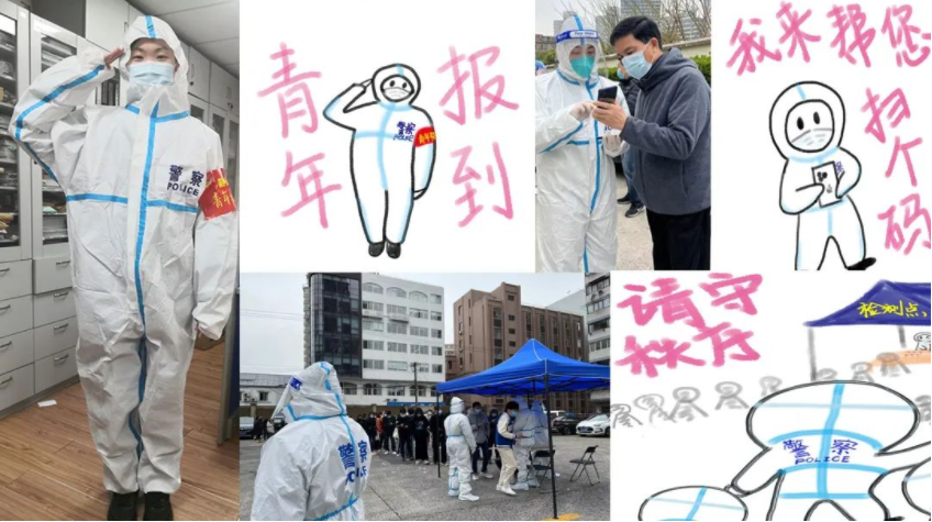 正是在这样的状态下,赵雅韵了解到了许多在一线奉献着的“大白”的故事,看到各式各样“大白”的形象,有老党员民警在社区积极为居民组建群防群治队伍,有青年民警为腿脚不便的老人送餐饭,有寒风骤雨中减收核酸检测点的辅警,有主动请缨一线的临退休民警,有连续奋战岗位不曾合眼党团突击队……
